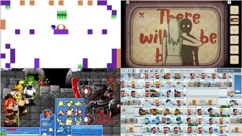 Figure 1. Composition created by Glitched Ghoul (2019) with screenshots of Achievement Unlocked (John Cooney, 2008), Cube Escape - The Cave (Rusty Lake, 2017), Epic Battle Fantasy (Matt Roszak, 2009), and Corporation INC (John Cooney, 2010).
